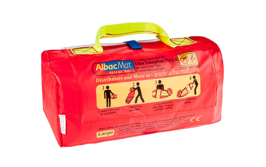 The AlbacMat is a flexible evacuation mat which can be used in an emergency to evacuate immobile people from such places as nursing homes, hospitals, schools, in the event of a fire or similar emergency.