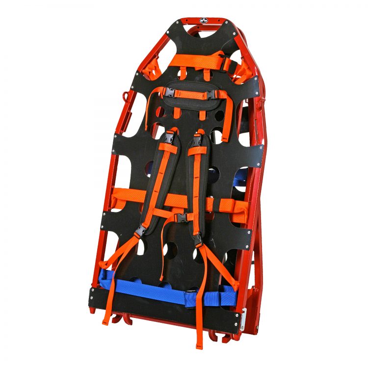 Both the MR and the Civil Rescue (CR) come with lifting slings (MR – 2 metres, CR – 1.2 metres) which are used for winching and lifting/lowering as well as extra carry slings. There are locking pins on each side which must be engaged for vertical lifting and when sliding/sledging.